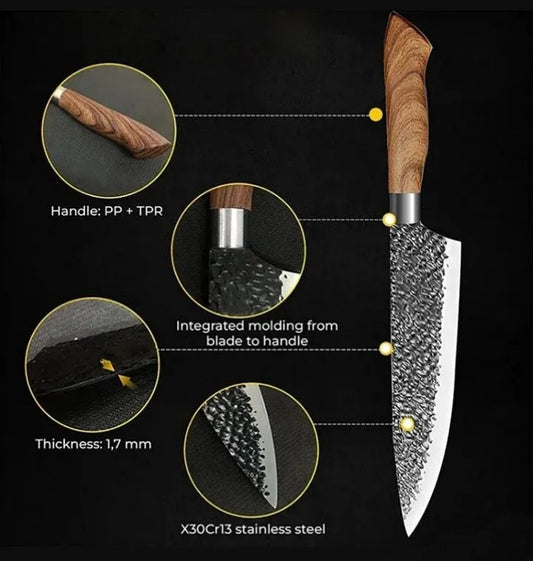 Set čeličnih noževa, makaza i ljuštilice - Rebrasti dizajn