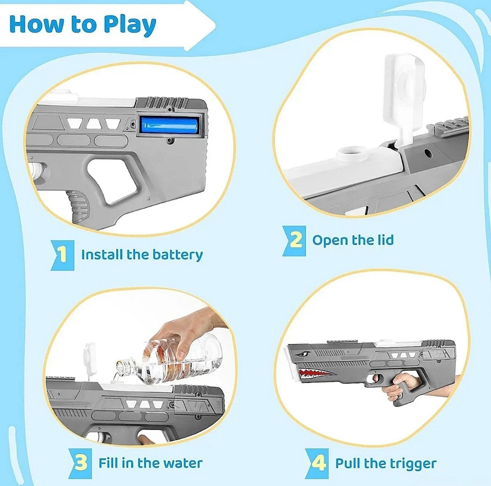 ✔ Automatsko ispaljivanje – Samo napunite vodu, pritisnite okidač i započnite borbu! Nema potrebe za ručnim pumpanjem.