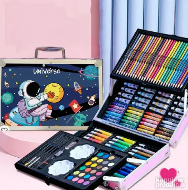 Umetnički set "Astronaut" dolazi u metalnom koferu sa šarenim i inspirativnim dizajnom. Ovaj set je savršen za sve kreativce, bilo da su početnici ili iskusni umetnici.