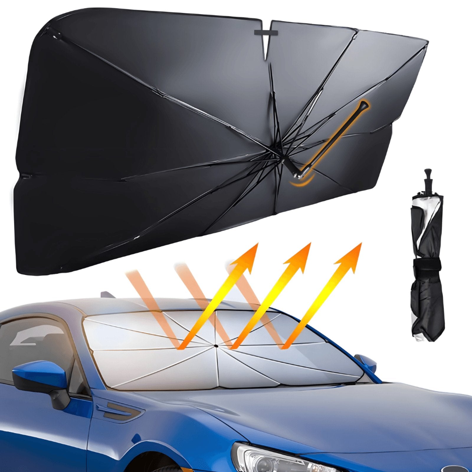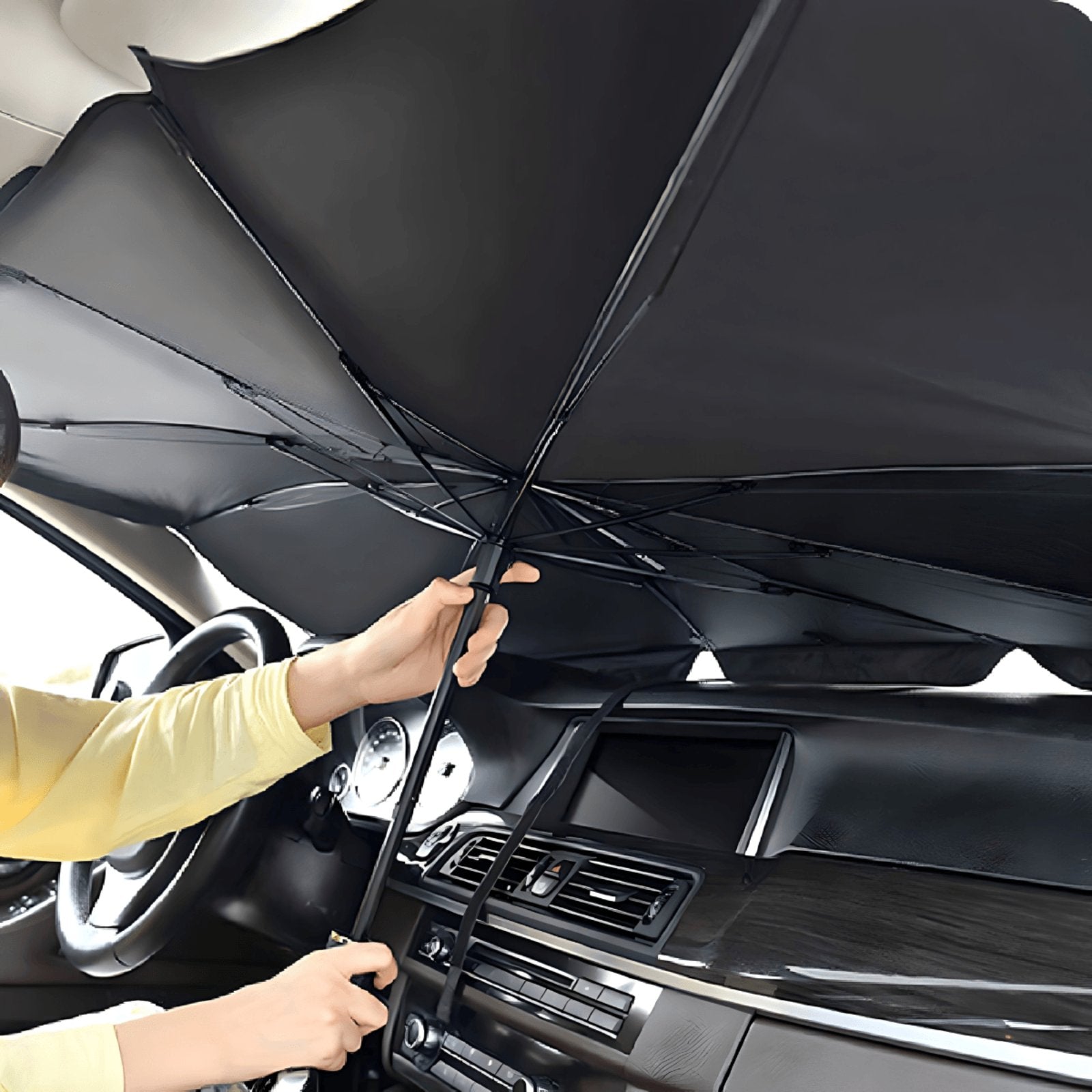 Jednostavno otvorite kišobran i postavite ga na vetrobransko staklo – za samo nekoliko sekundi vaš automobil postaje zaštićen od sunca i pregrevanja.