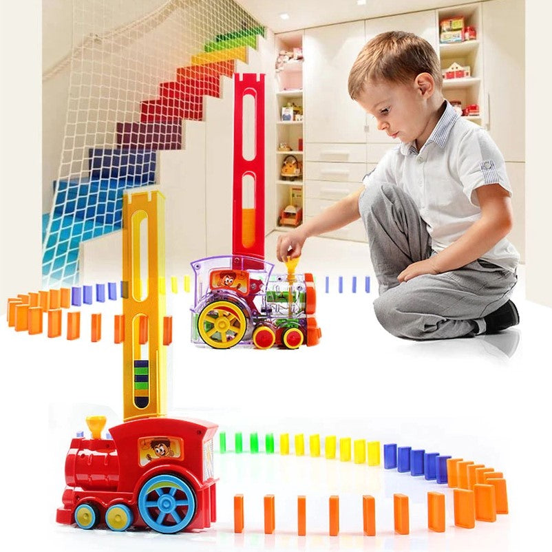 🔹 Automatsko slaganje domina – jednostavno ubacite domine u vagon i gledajte kako ih voz ređa