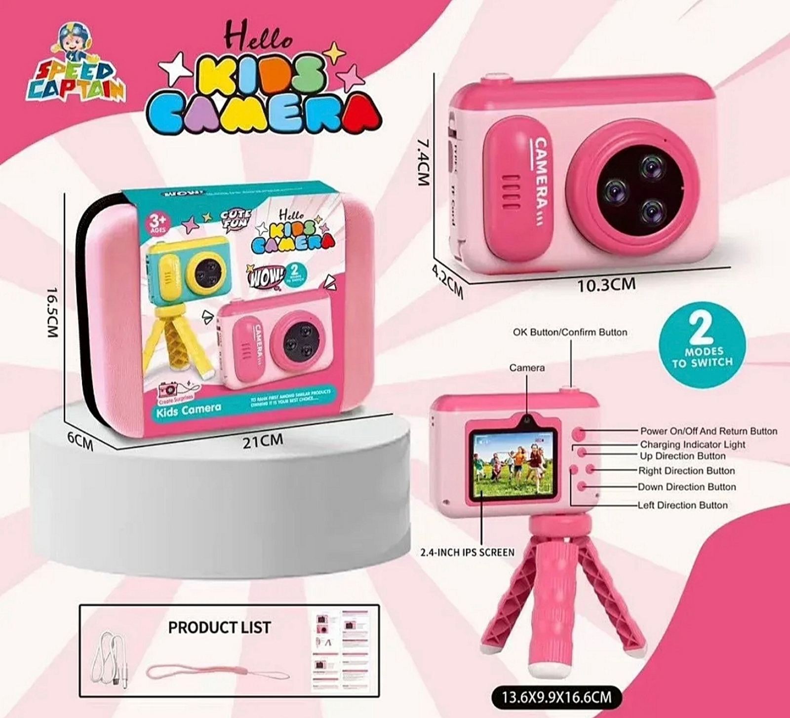 Fotoaparat savršen za male avanturiste i njihove prve fotografske korake. Dizajniran da bude lako upotrebljiv, ovaj fotoaparat je idealan za decu koja žele da istraže svet fotografije kroz igru i kreativnost. Sa stabilnim stalkom i jednostavnim interfejsom, mališani će uživati u svakom trenutku dok hvataju svoje omiljene trenutke.
