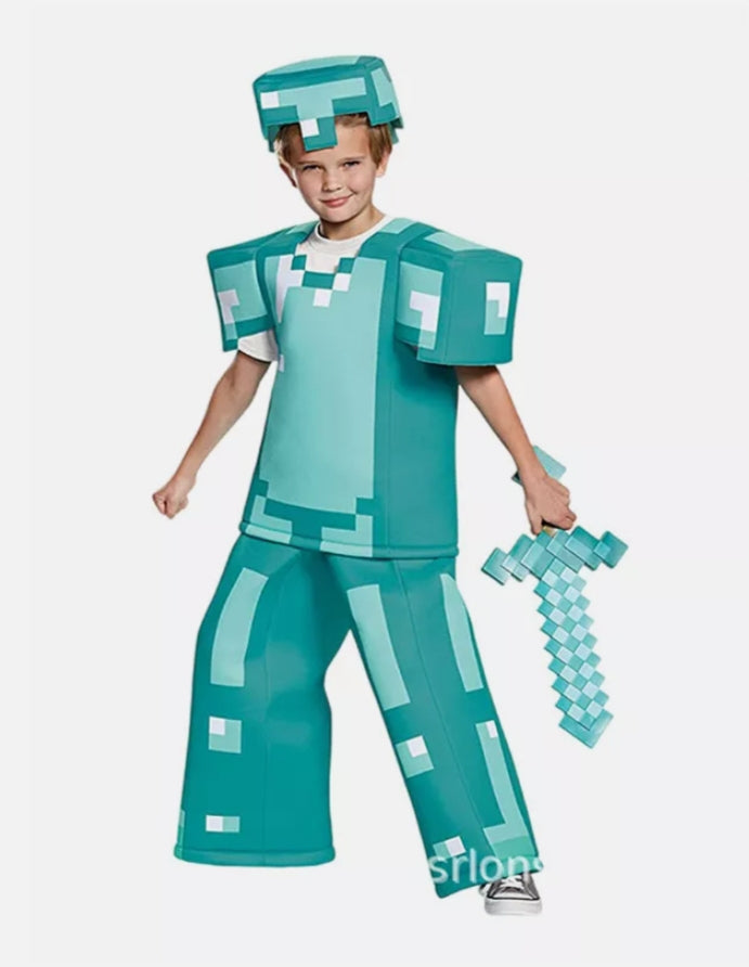 Zaronite u svet Minecrafta kao pravi Diamond Warrior! Ovaj sjajni kostim sa dijamantskim oklopom pruža svakom mališanu osećaj moći, avanture i spremnosti za borbu protiv creepera, zombija i drugih čudovišta!