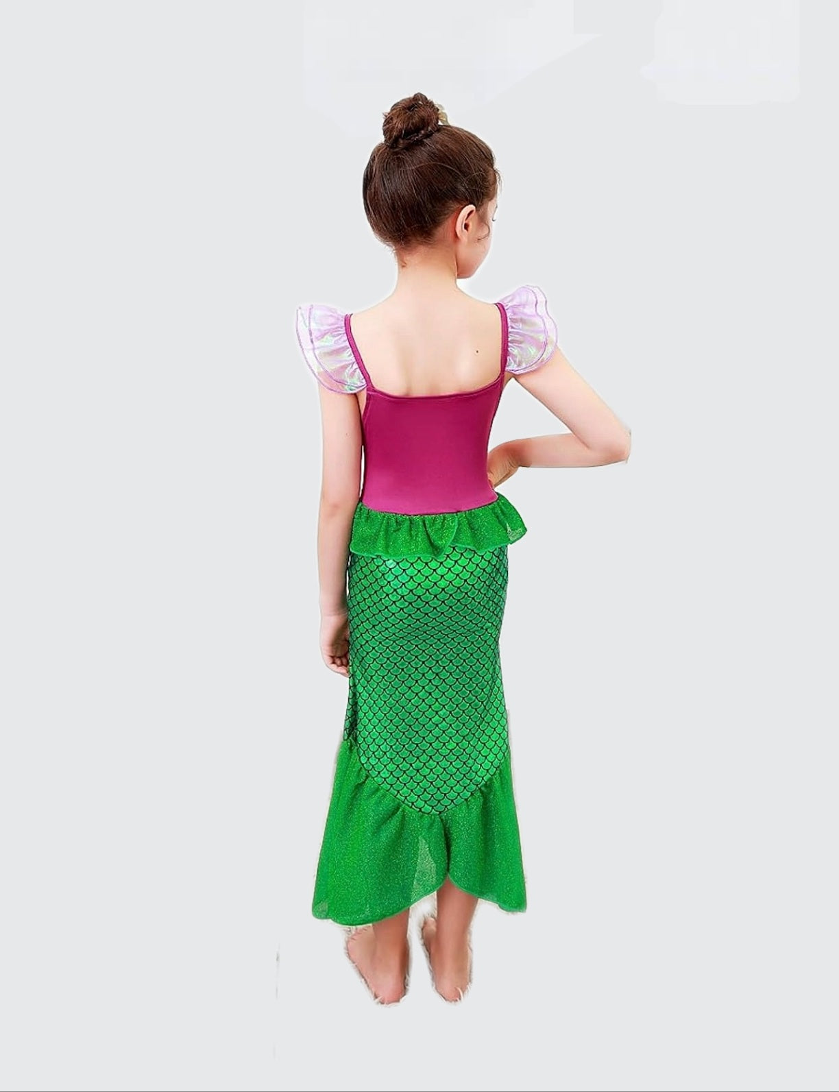 Gornji deo kostima je u nežnoj rozoj boji, koja kontrastira sa zelenim repom. Ovaj deo može biti dizajniran u obliku bikinija ukrašen biserima, dodajući dodatni šarm i glamur.