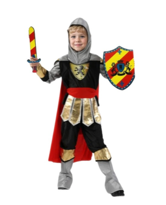 Postani hrabri vitez i zaštiti kraljevstvo! Ovaj detaljan kostim sa crvenim plaštom, štitom i mačem savršen je za male ratnike puni mašte i igre. Idealno za maskenbale, rođendane ili svakodnevnu zabavu.