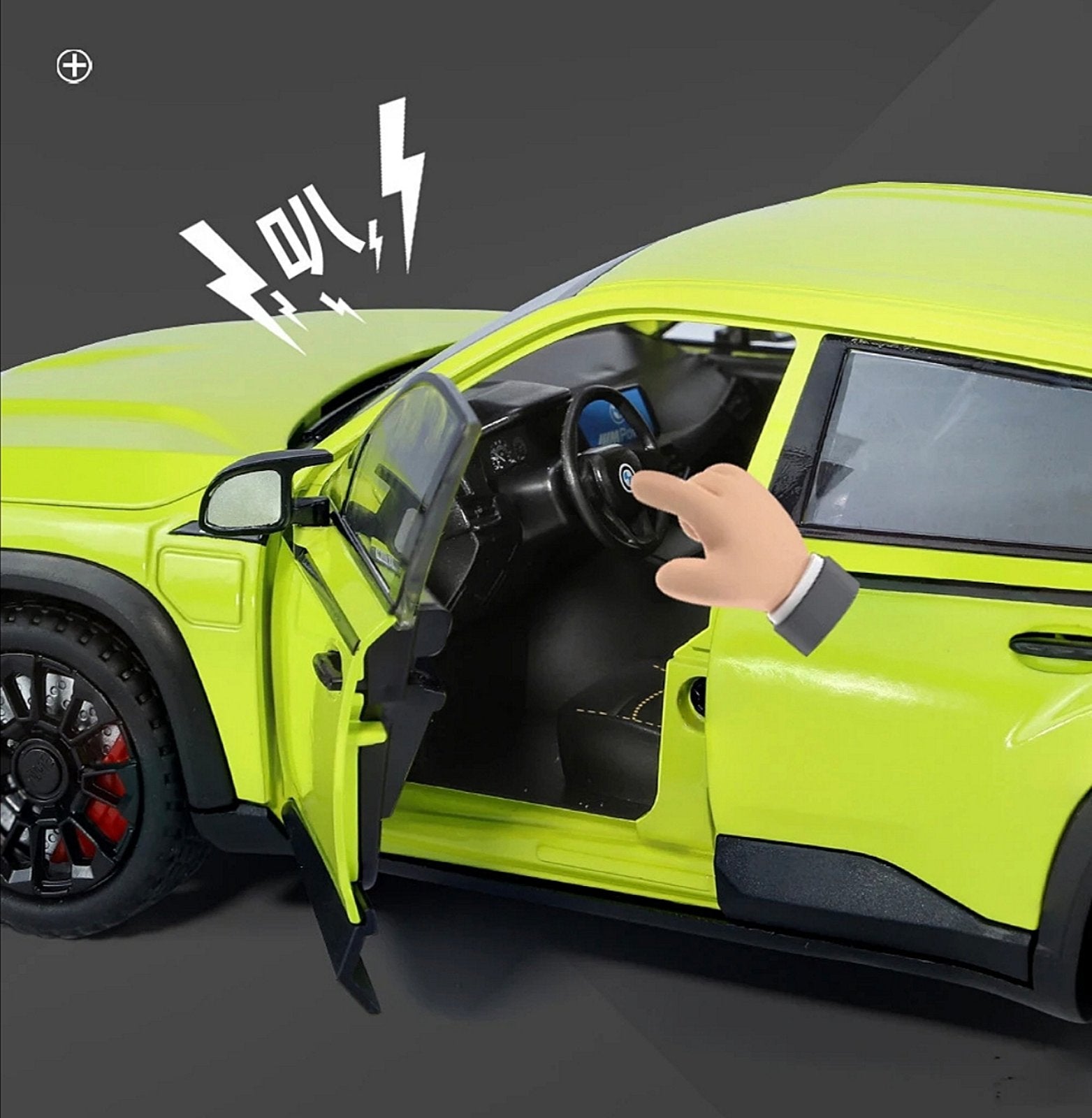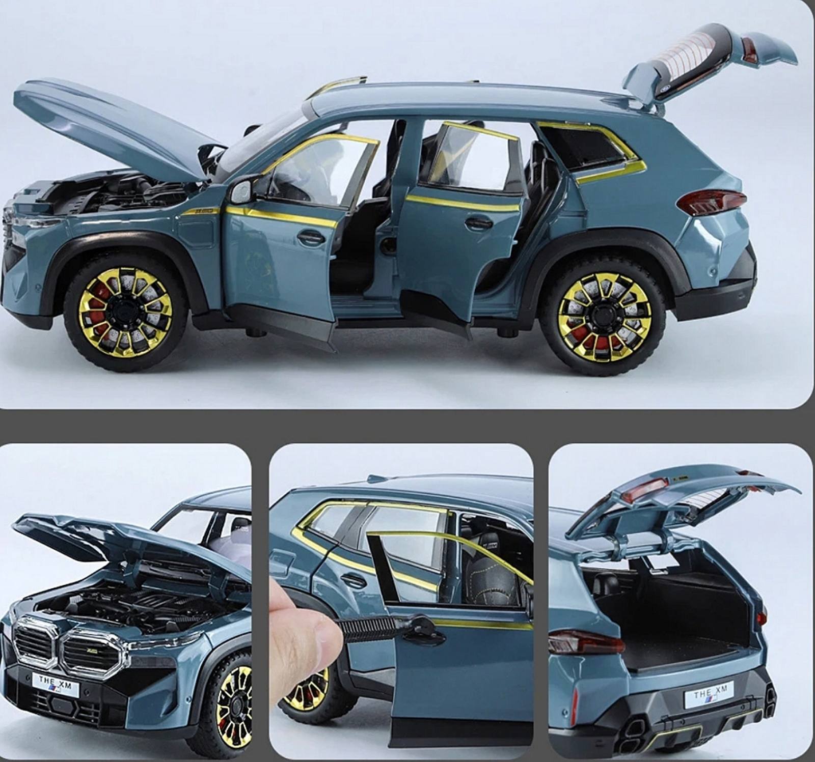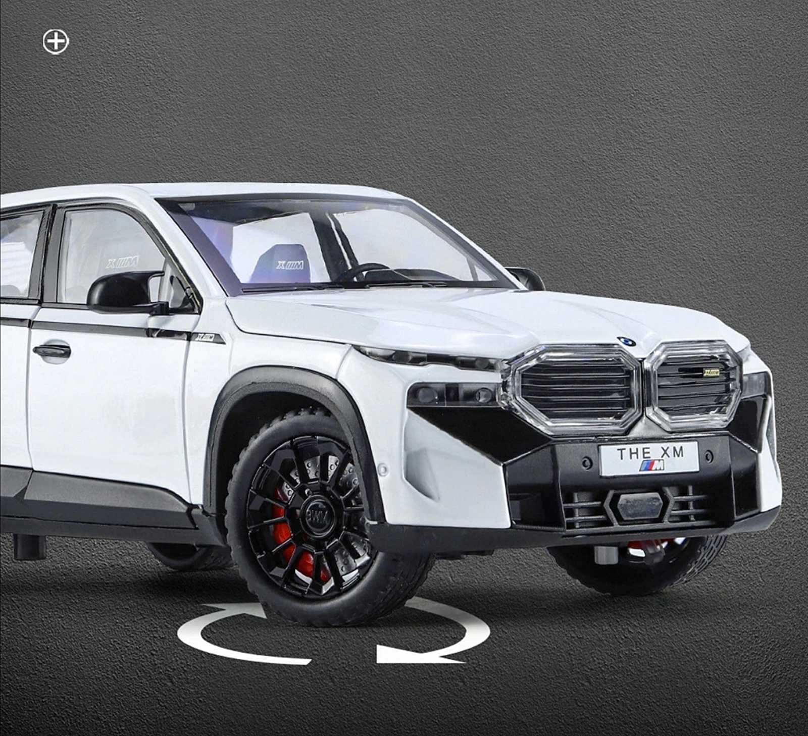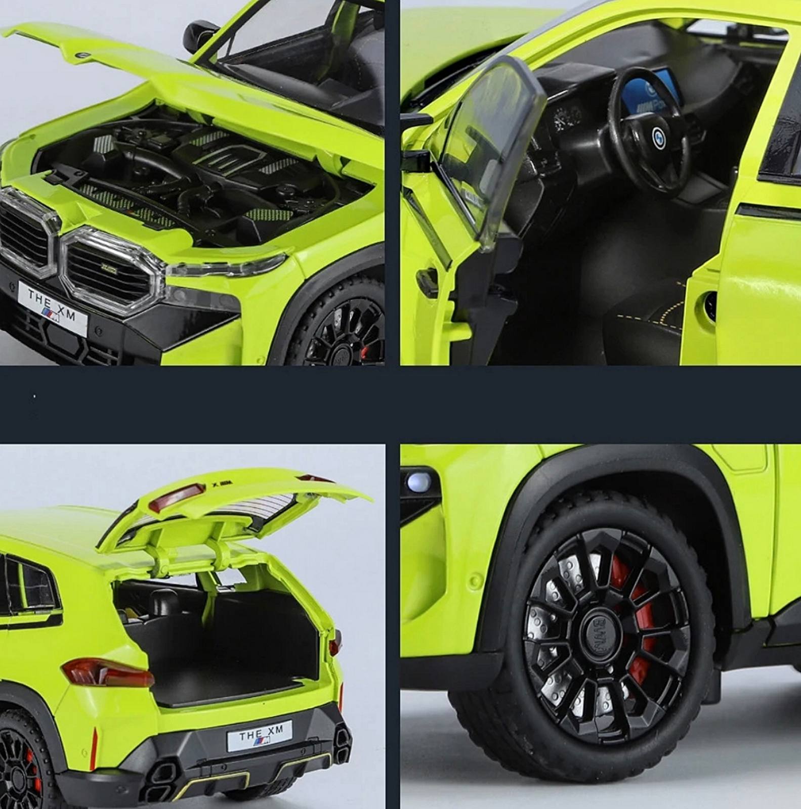 BMW XM 2024 je sofisticiran model automobila izrađen s pažnjom na detalje, kombinujući metal i plastiku za čvrst i elegantan dizajn. Materijali su odabrani da pruže dugotrajnost i preciznost u izgledu. Model je dostupan u četiri klasične i moderne boje: zelenoj, crnoj, beloj i teget. Ove boje omogućavaju personalizaciju, bilo da preferirate smelu ili suptilnu estetiku.