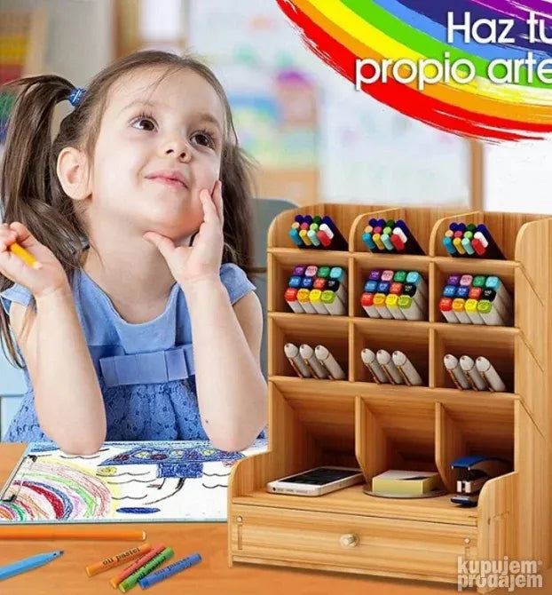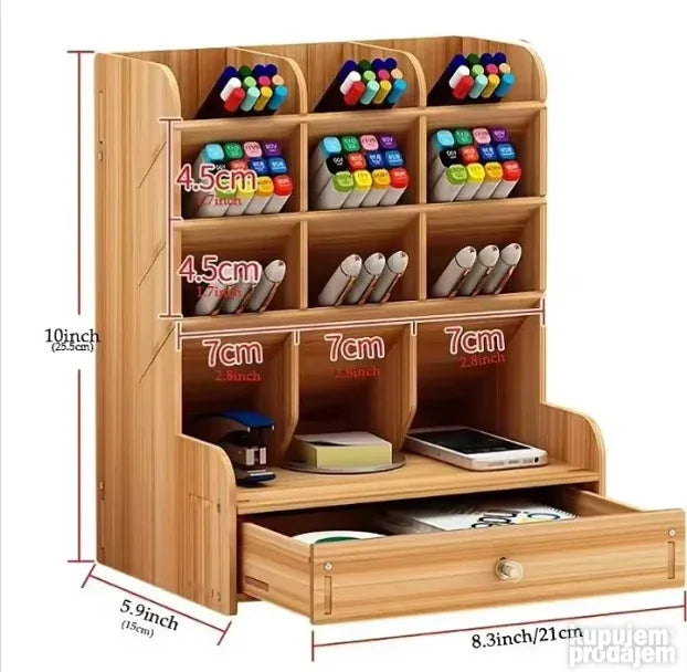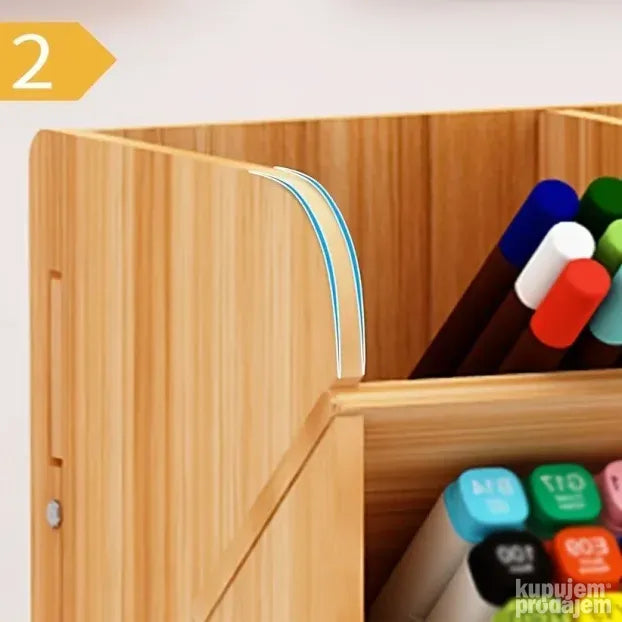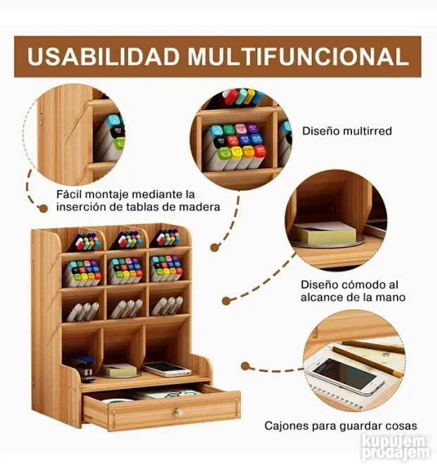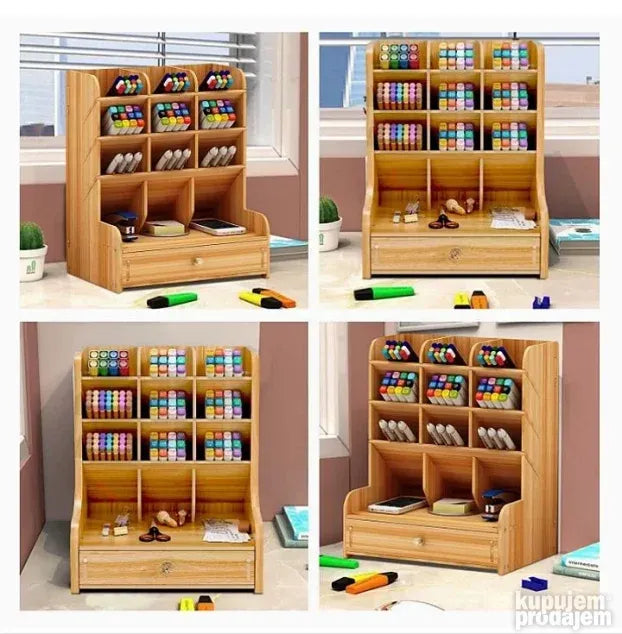Odličan je za odlaganje olovaka, makaza, kozmetike, USB stikova, kao i četkica za šminkanje ili boje. Sastavljanje je brzo i jednostavno, traje samo 10 do 15 minuta. Ovaj organizator je savršeno rešenje za bolju organizaciju vašeg prostora!