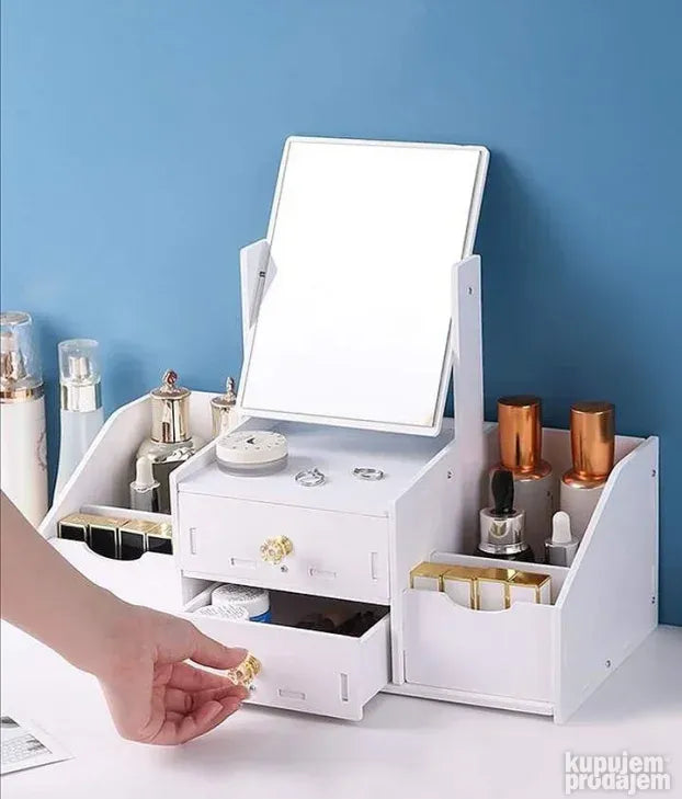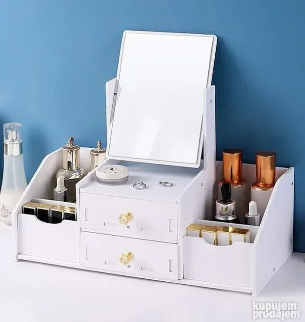 Kozmetički organizer sa ogledalom, koji je idealan i za čuvanje nakita. Ovaj svestrani organizator ne samo da će uneti red u vašu kolekciju kozmetike, već će pružiti i elegantan način za odlaganje vaših dragocenosti.