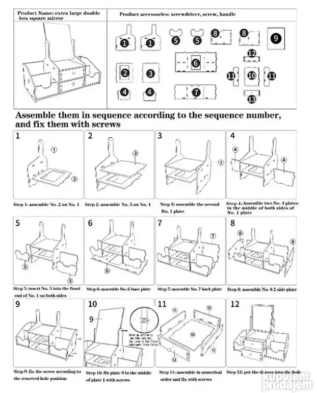Organizer se sastoji od dve zatvorene fioke koje nude sigurno mesto za sitni nakit poput prstenja, minđuša i ogrlica, štiteći ih od prašine i oštećenja. Pored toga, ima četiri otvorena odeljka koja omogućavaju brz i jednostavan pristup svakodnevnim kozmetičkim proizvodima poput pudera, ruževa i četkica. Takođe, predivno ogledalo dodaje dodatni šarm i funkcionalnost vašem stolu za šminkanje ili toaletnom stolu, omogućavajući vam da precizno nanesete šminku.