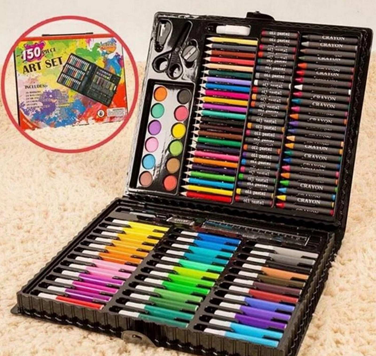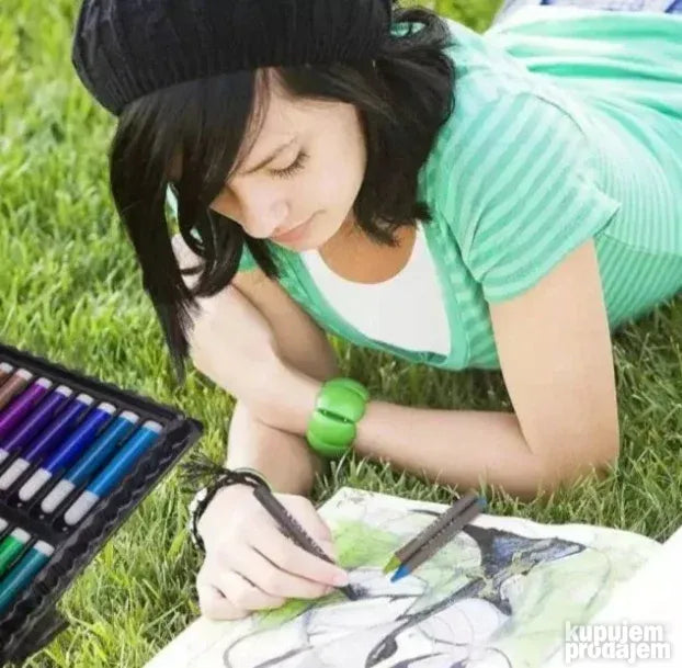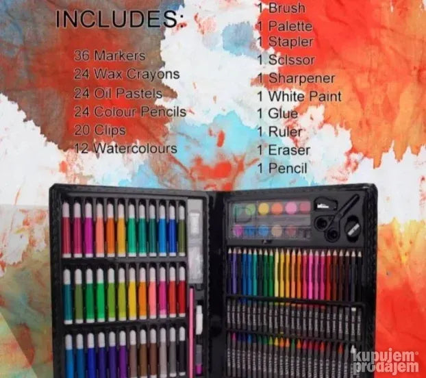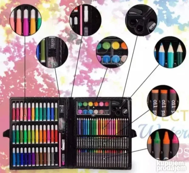 Nadam se da će vam ovaj super kul umetnički set od 150 komada biti baš ono što vam treba za sve vaše kreativne projekte! Ove olovke i flomasteri su stvarno kvalitetni i sigurno će vam dugo trajati. Set je posebno pogodan za početnike, jer ima različite vrste olovaka, markera i boja, tako da možete isprobati različite stilove crtanja bez dodatnih troškova. To je stvarno šik poklon koji će vam pomoći da razvijete svoju kreativnost. Set je pogodan za sve uzraste, posebno za decu koja vole slikanje, crtanje i bojenje. Materijali su napravljeni od bezbednog i ekološki prihvatljivog PVC materijala. Uživajte u svom novom umetničkom setu!